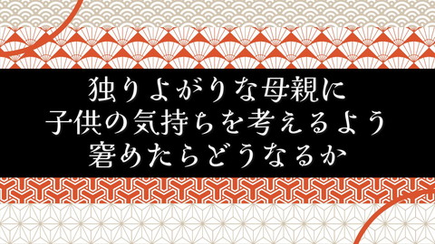 独りよがりな母親に子供の気持ちを考えるよう窘めたらどうなるか~全会員向け~ このコンテンツを閲覧するにはログインが必要です。お願い Log In. あなたは会員ですか ? 会員について 2025-10-02 Yuuki Mogami 0